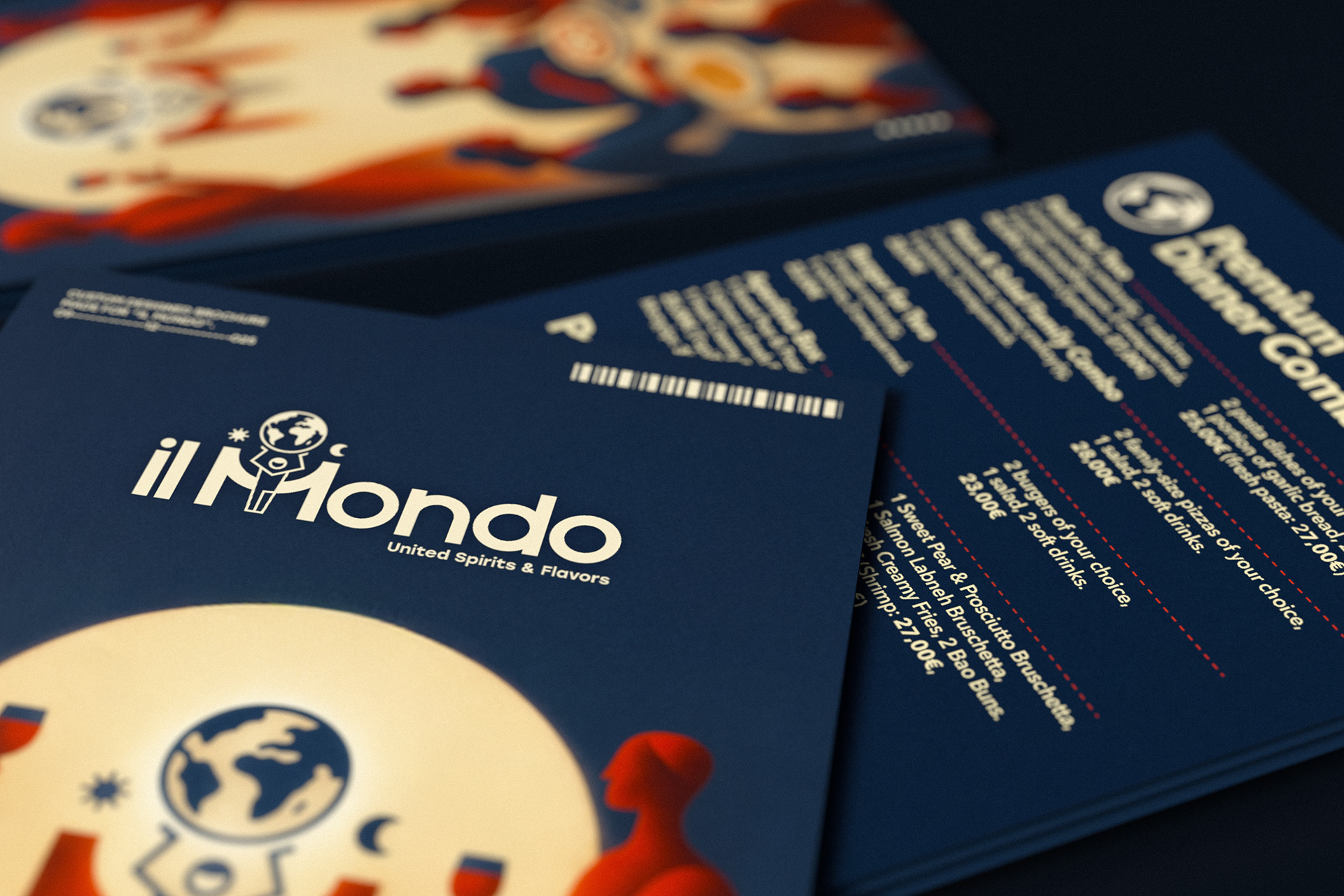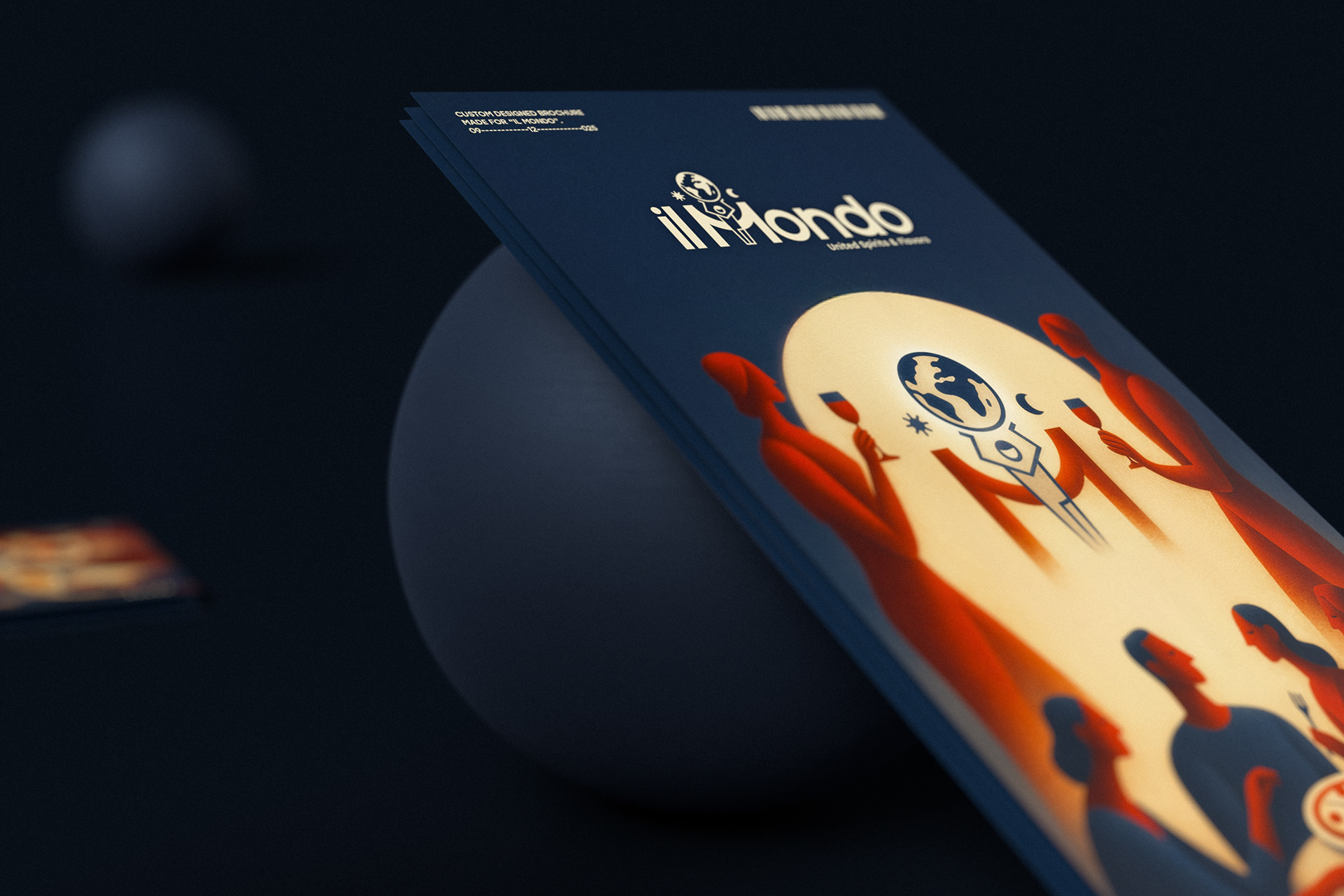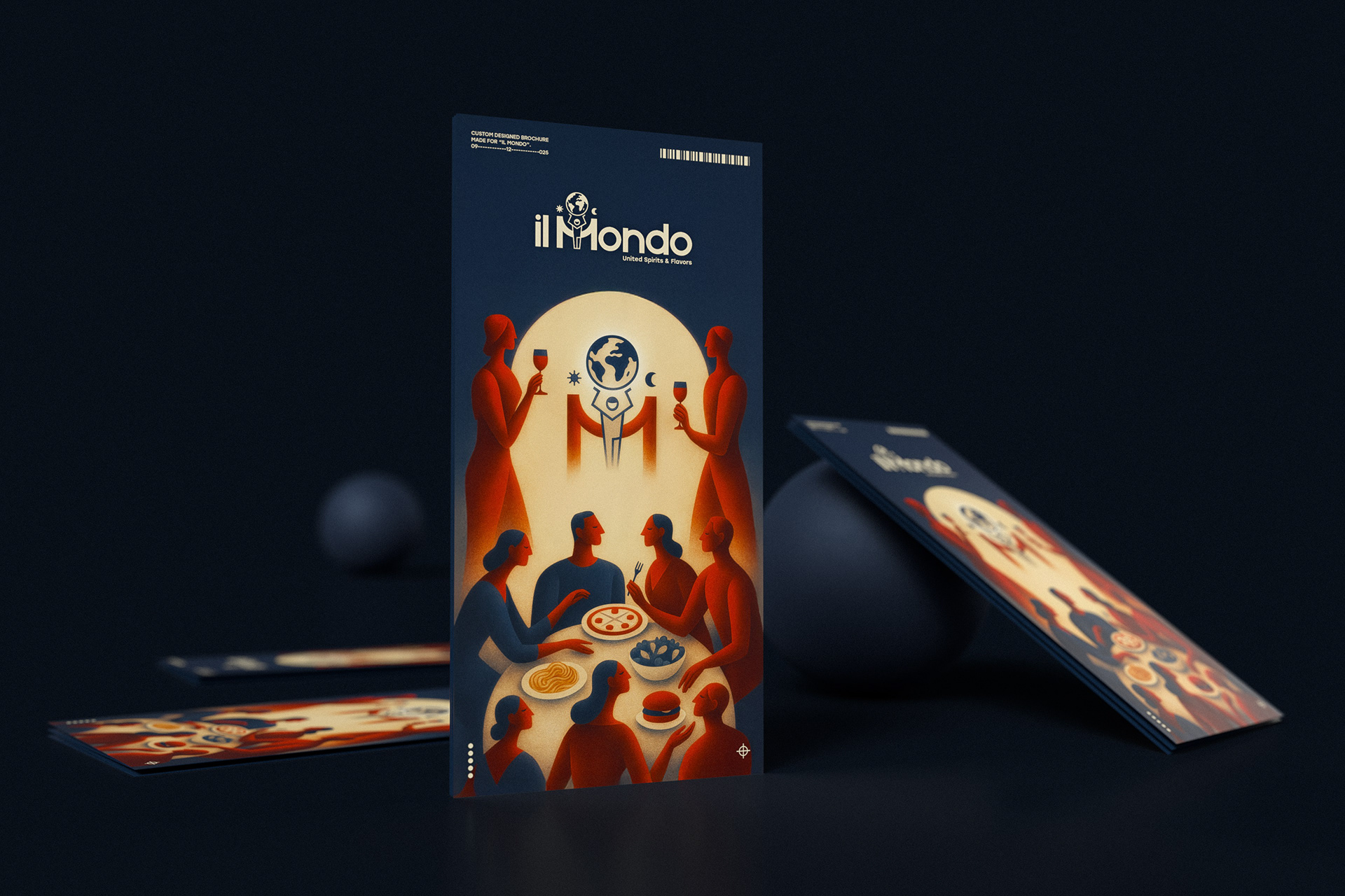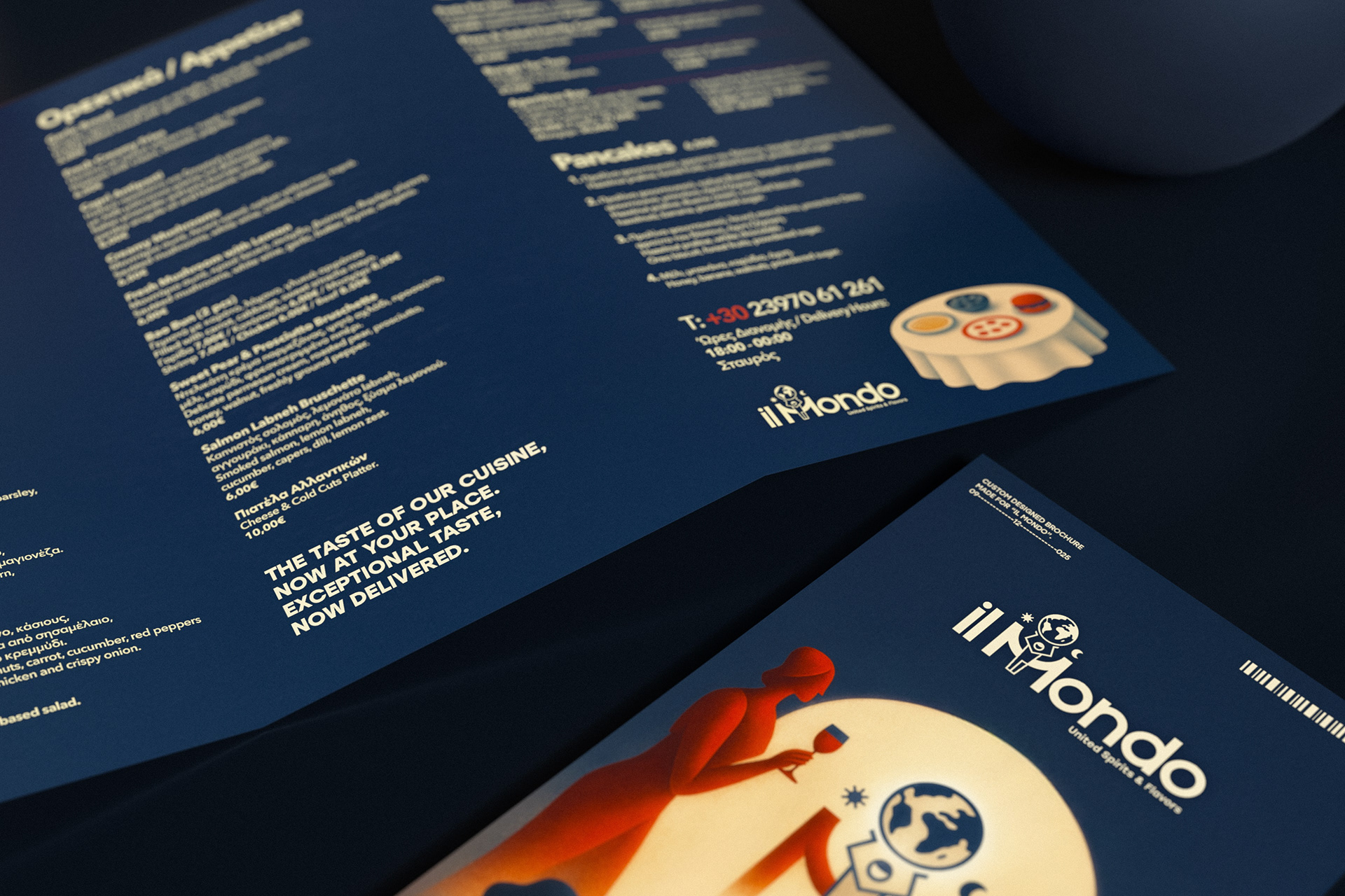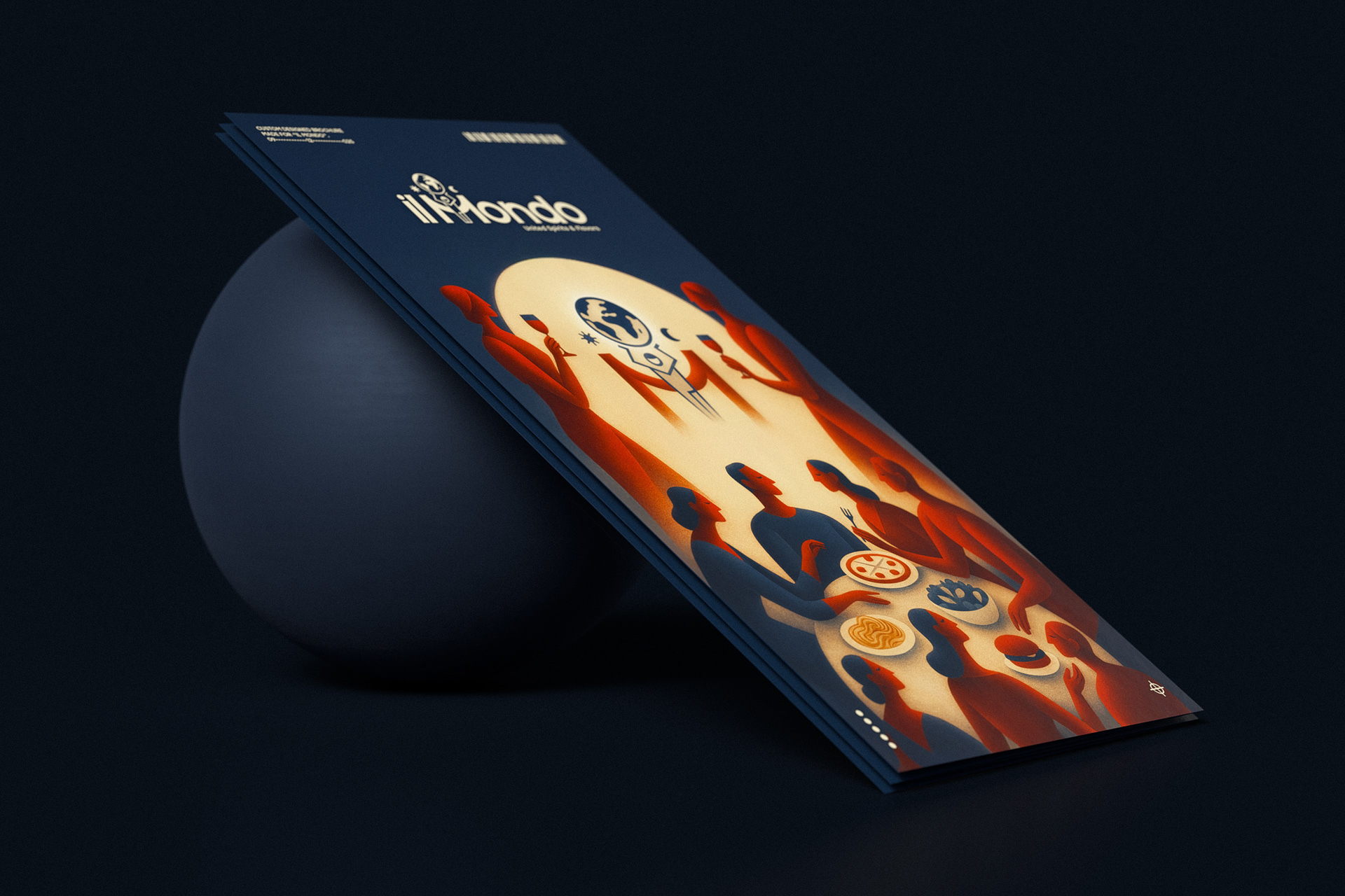 The final outcome is a delivery brochure with a strong visual identity, where illustration, typography, and layout operate as a unified system, translating the Il Mondo brand into a clear and recognizable print experience.