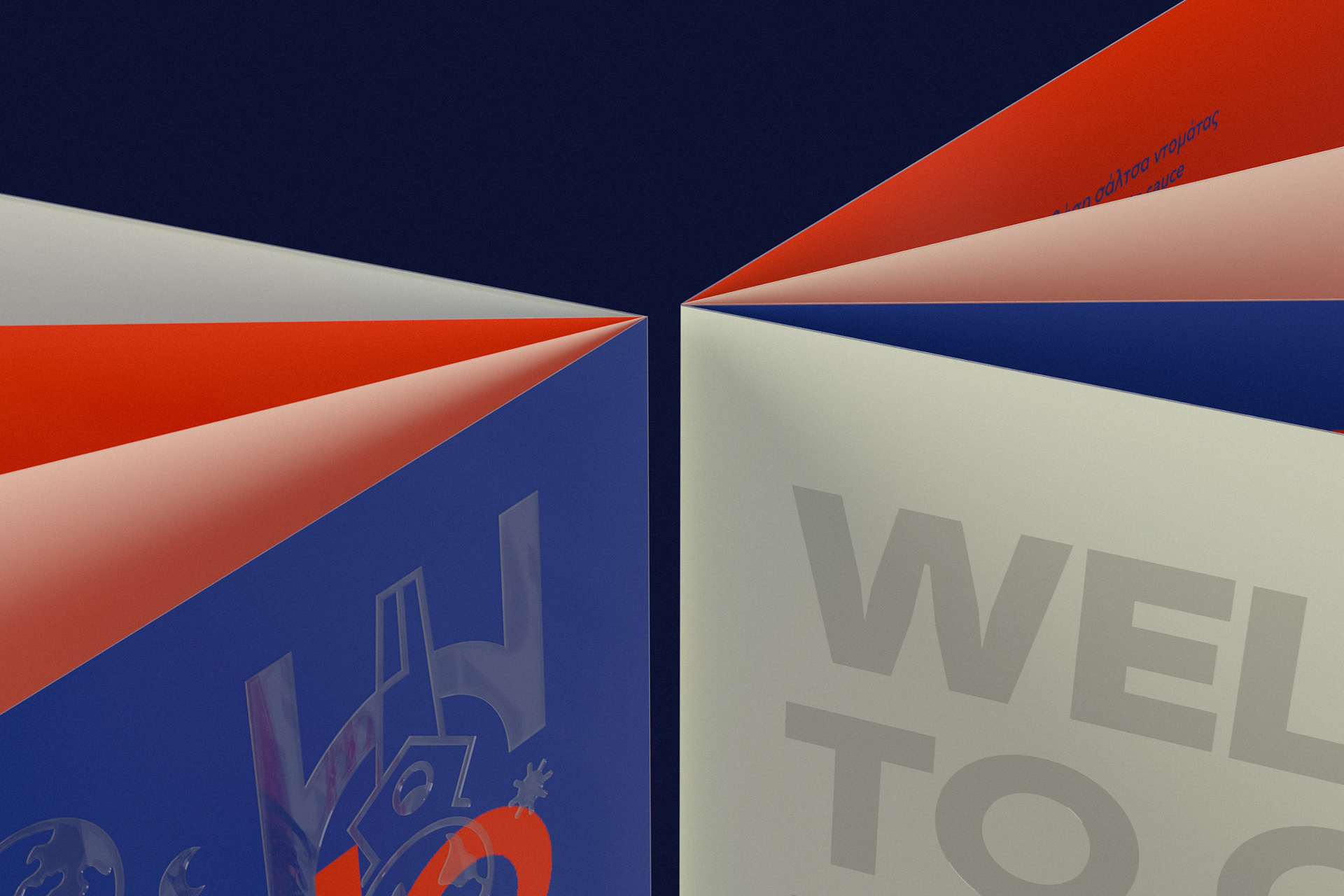 Το εμπρόσθιο εξώφυλλο αποτελεί το βασικό σημείο έμφασης. Η εικόνα ορίζει την ταυτότητα και το μήνυμα αποδίδεται στο εμπρός μέρος μέσω εξωτερικού spot UV, λειτουργώντας ως απτική και οπτική δήλωση που ενεργοποιείται με το φως και τη χρήση. Το οπίσθιο εξώφυλλο λειτουργεί ως επιφάνεια ταυτότητας, με επαναλαμβανόμενο έμβλημα σε όλη την έκταση, ενισχύοντας τη συνοχή του brand.