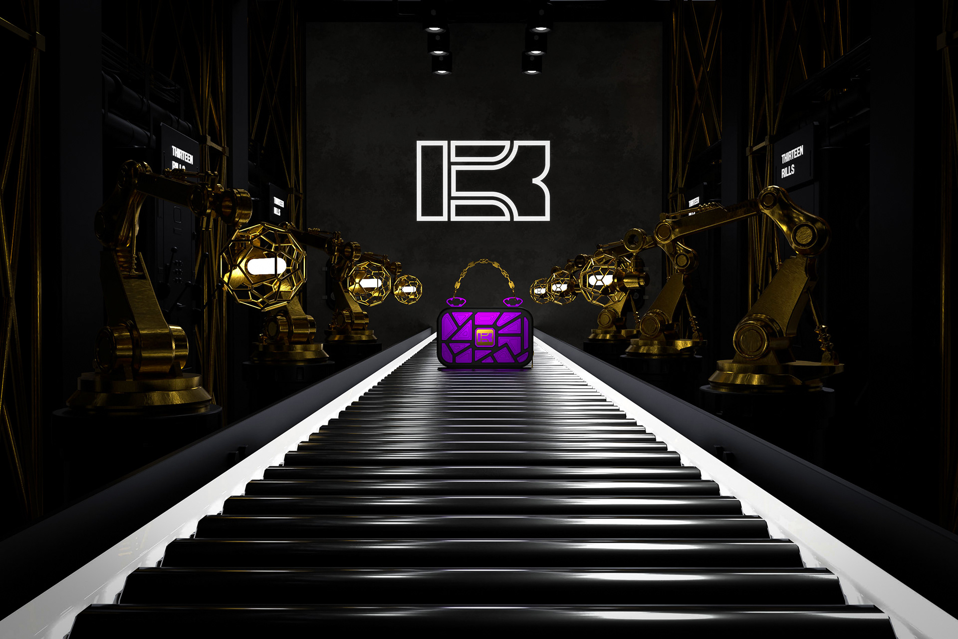 In this sequence, the handbag, with its bold purple and gold accents, stands out as the hero of the reel, illuminated by clean, dynamic lighting against a backdrop of dark industrial tones. The neon-like glow of the THIRTEEN RILLS logo adds a futuristic touch, emphasizing the brand’s modern, edgy identity. Each robotic arm’s precise movement conveys a sense of luxury and craftsmanship, reminiscent of an automated factory line creating the perfect, premium accessory.