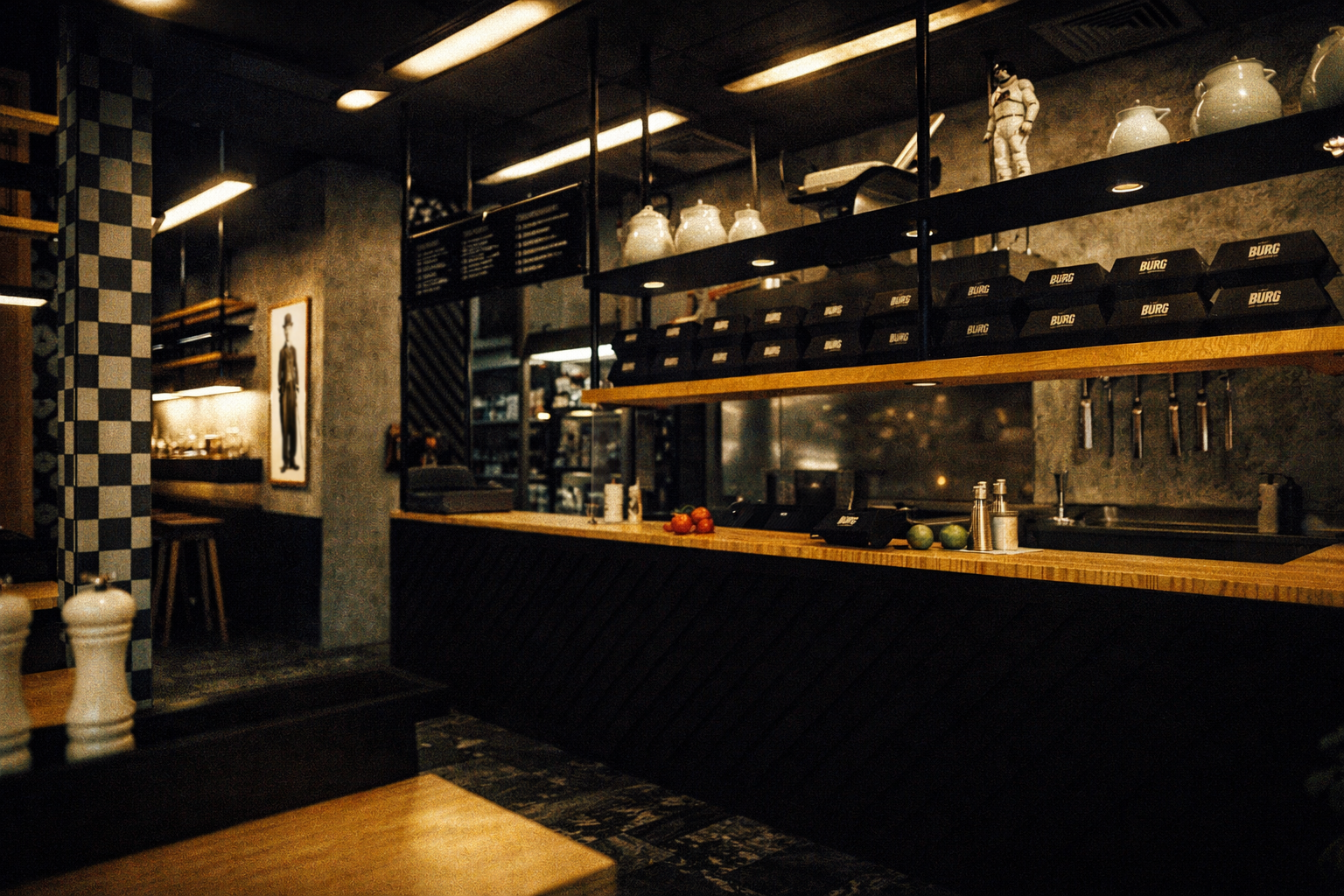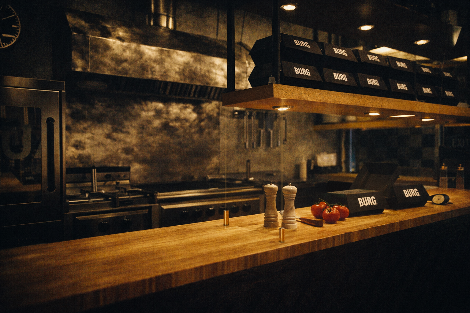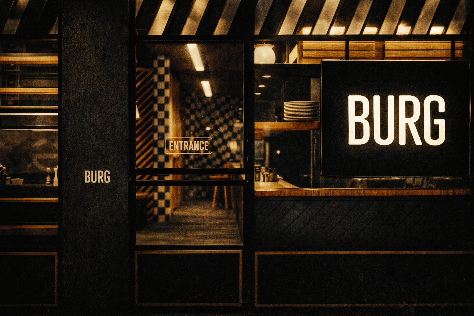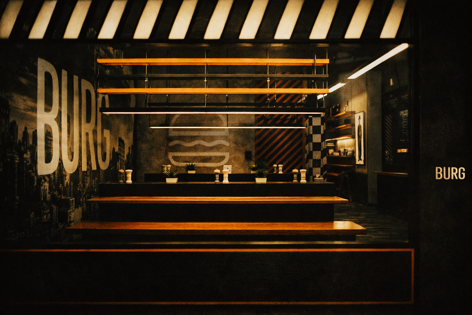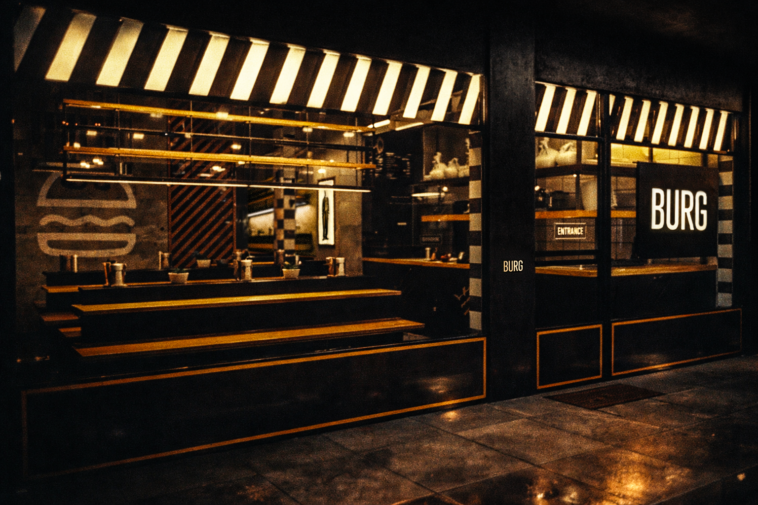 BURG explores how a brand can extend beyond graphics and become part of the space itself. The project focuses on the relationship between identity, architecture and light inside a compact fast food environment.